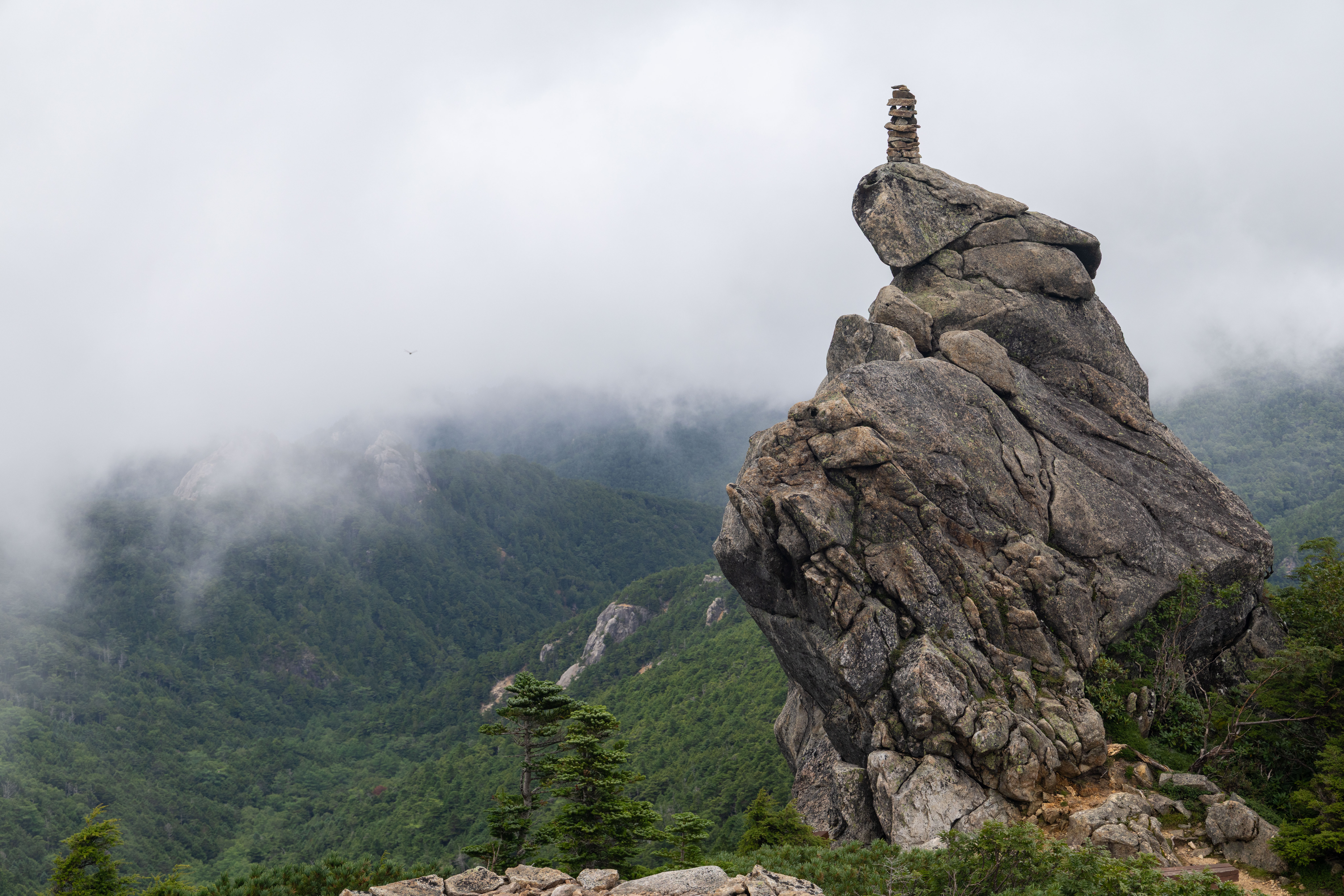 望遠で見ると岩が積み重なっているのがよく分かります。