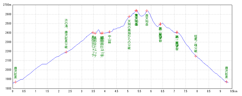 | 渋の湯、唐沢鉱泉分岐 | 12:58:46 | 2.37km | 2193m | ||