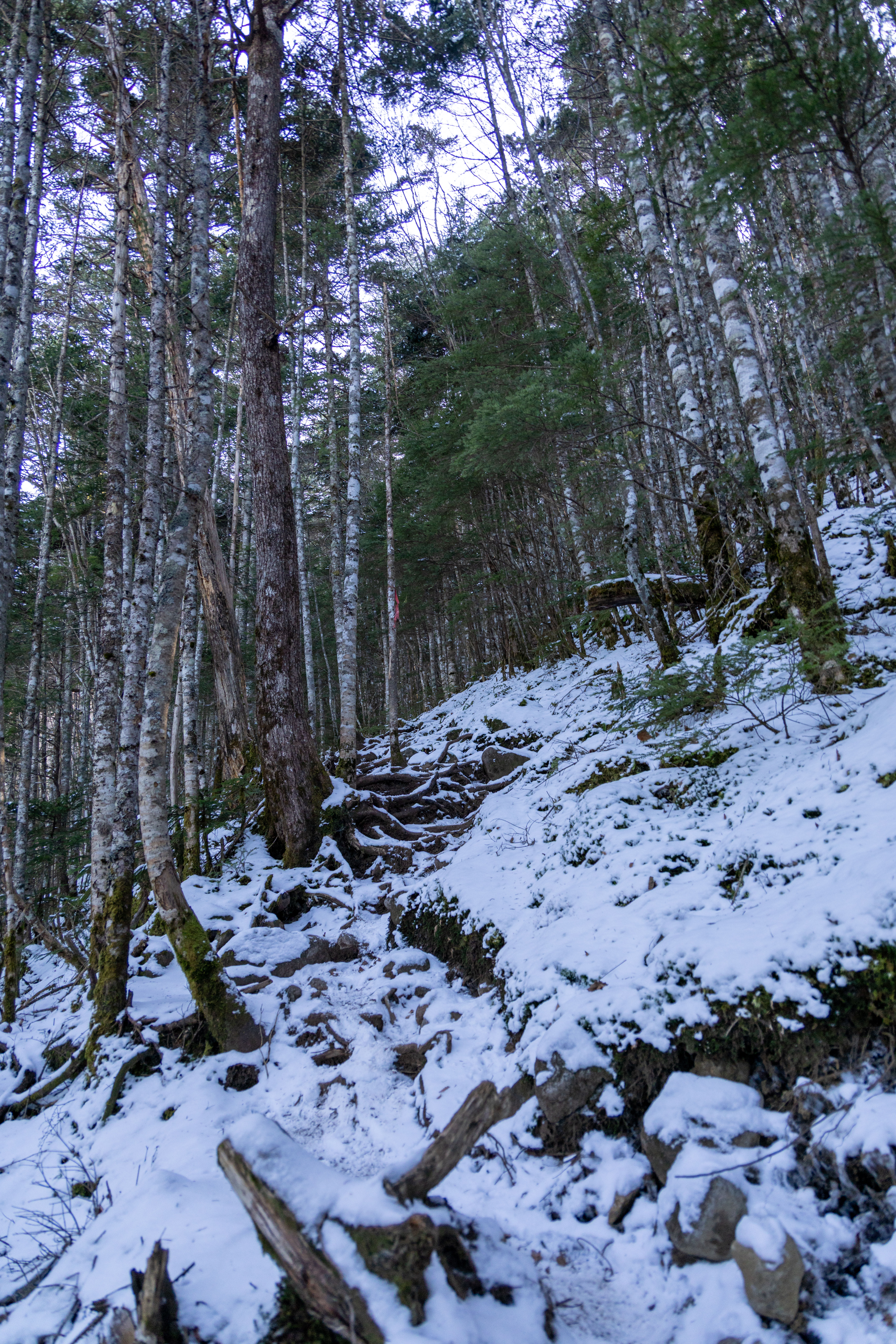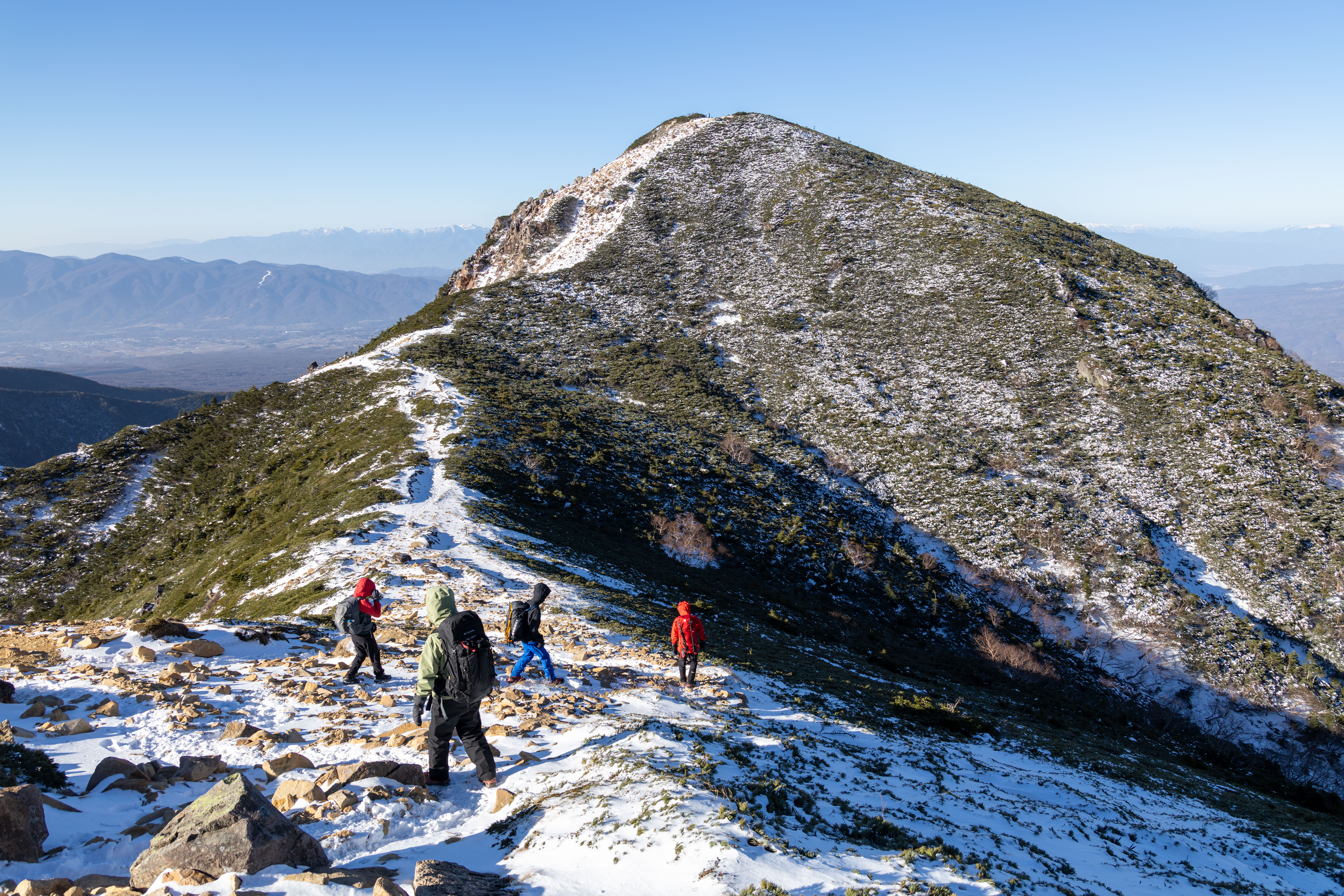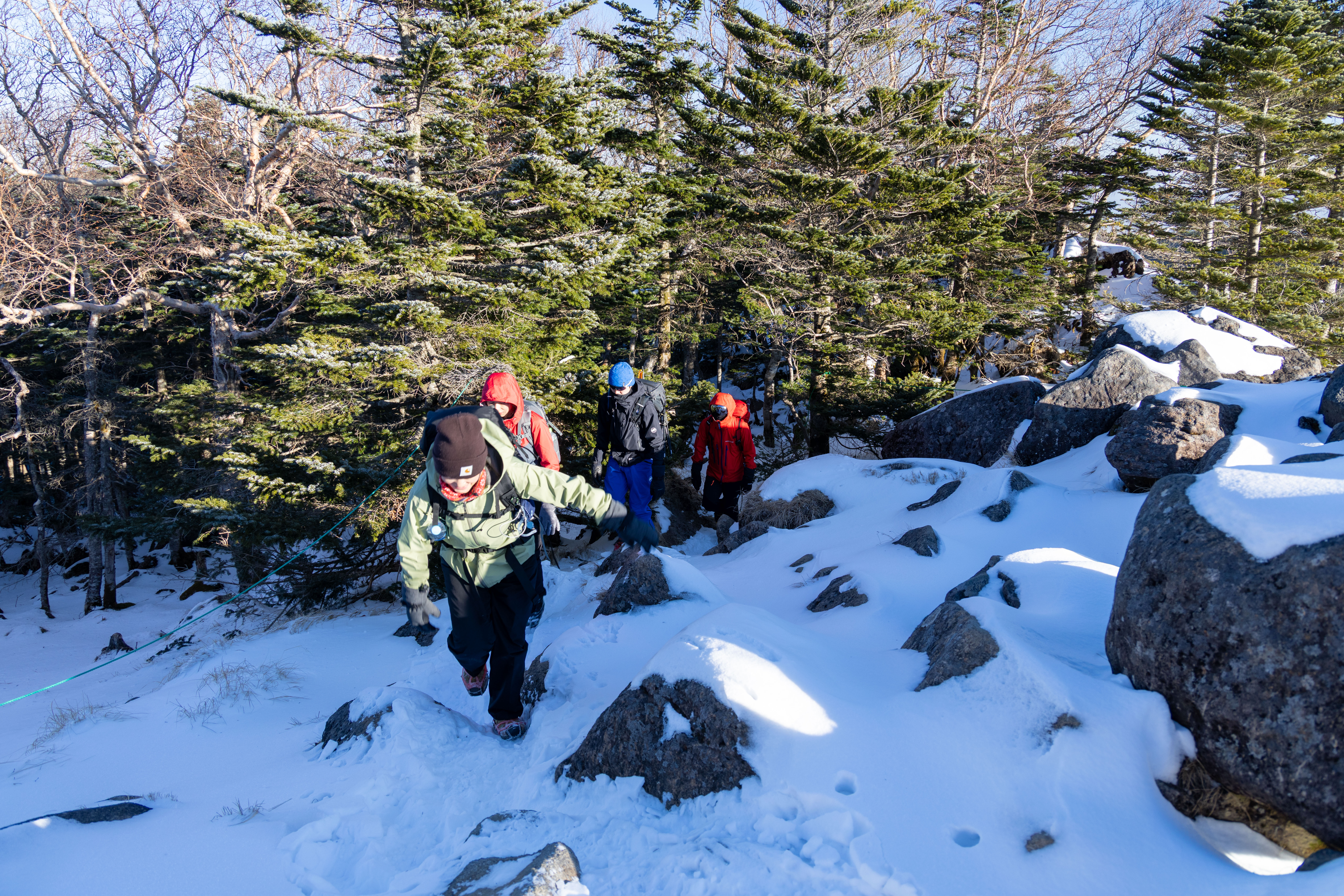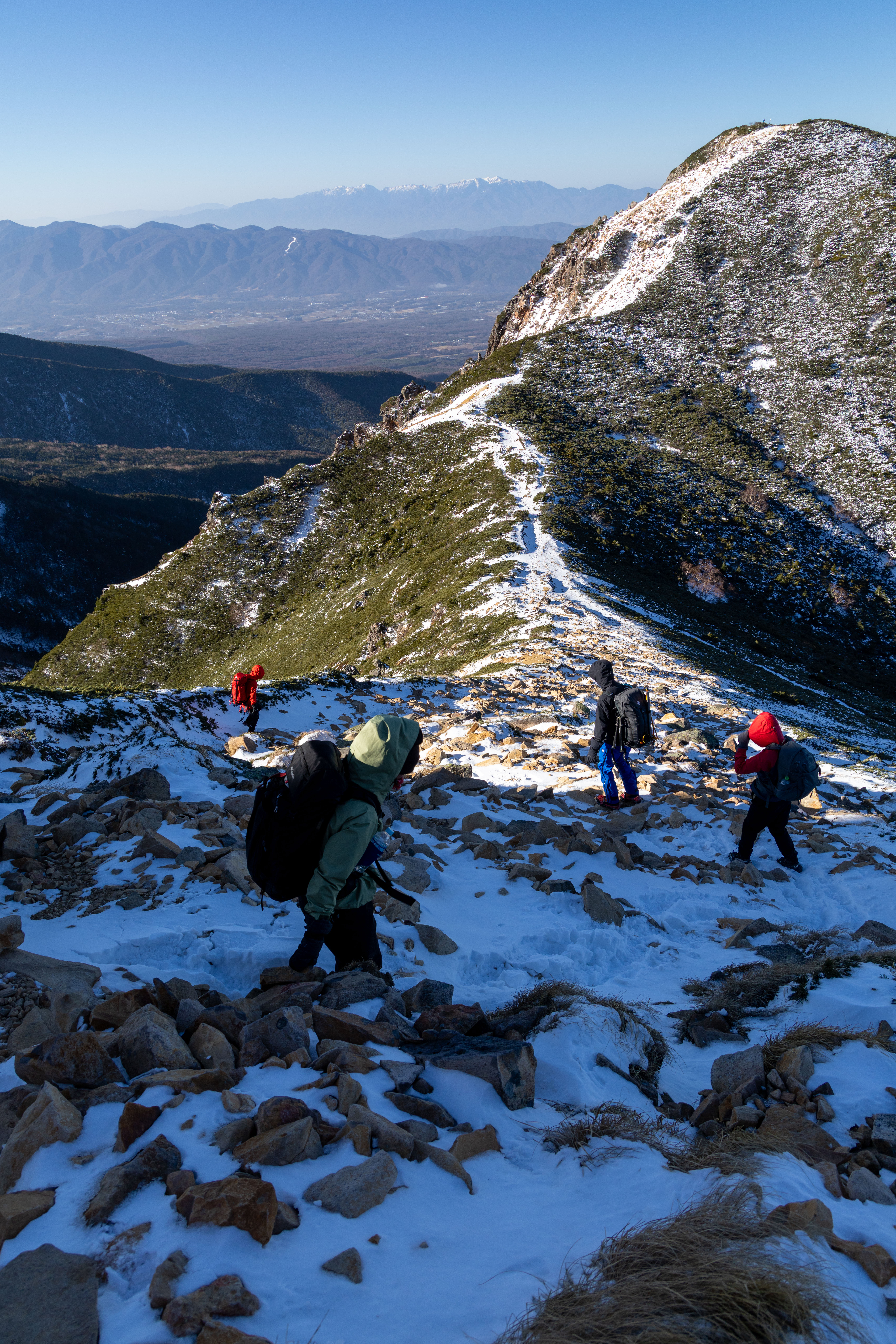 まだ雪がほとんど降っておらず石が見えているので歩きづらいですが、青空で気持ちよく歩けます。