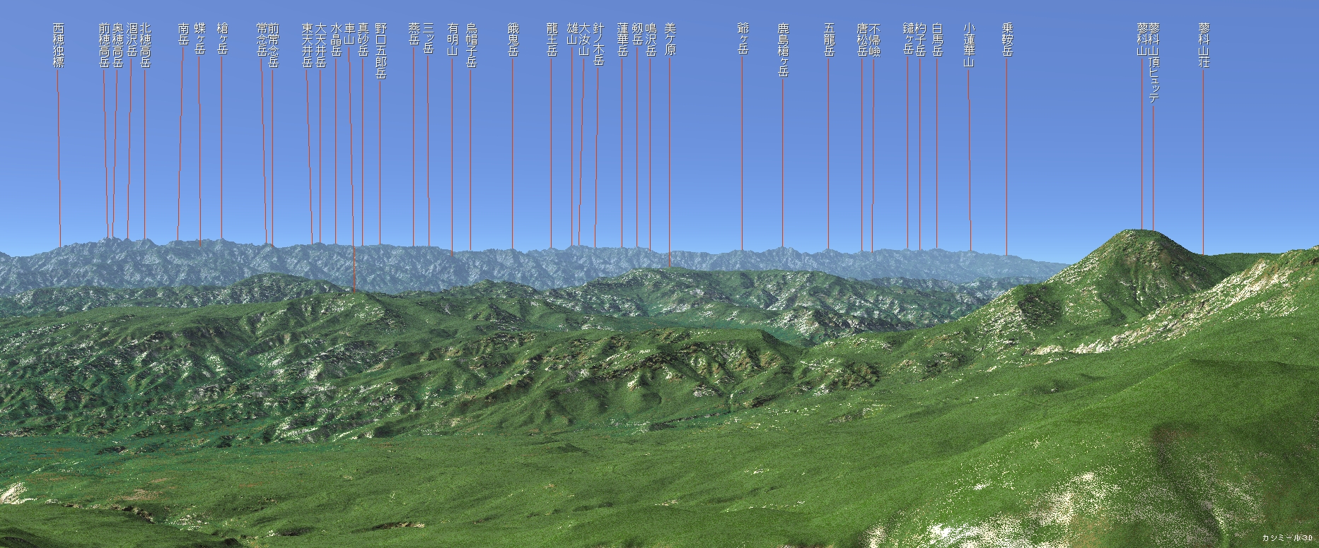 かなり低くなりましたが、南アルプス、中央アルプス、蓼科山、北アルプスもよく見えます。