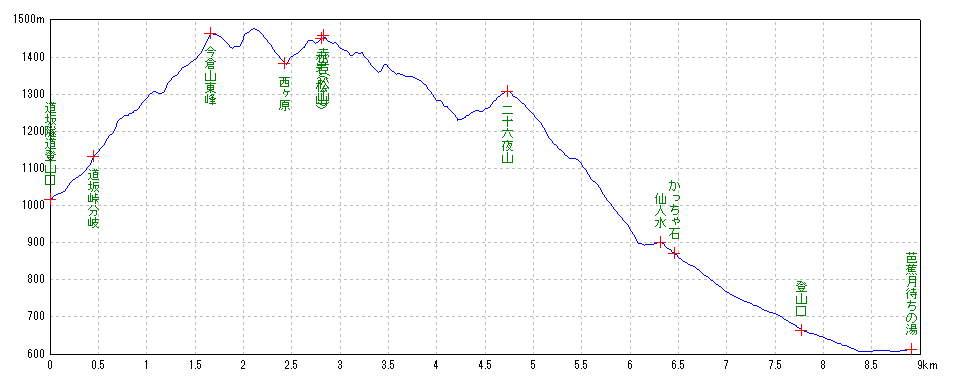 | 道坂隧道登山口 | 09:53:33 | 0.00km | 1017m | ||