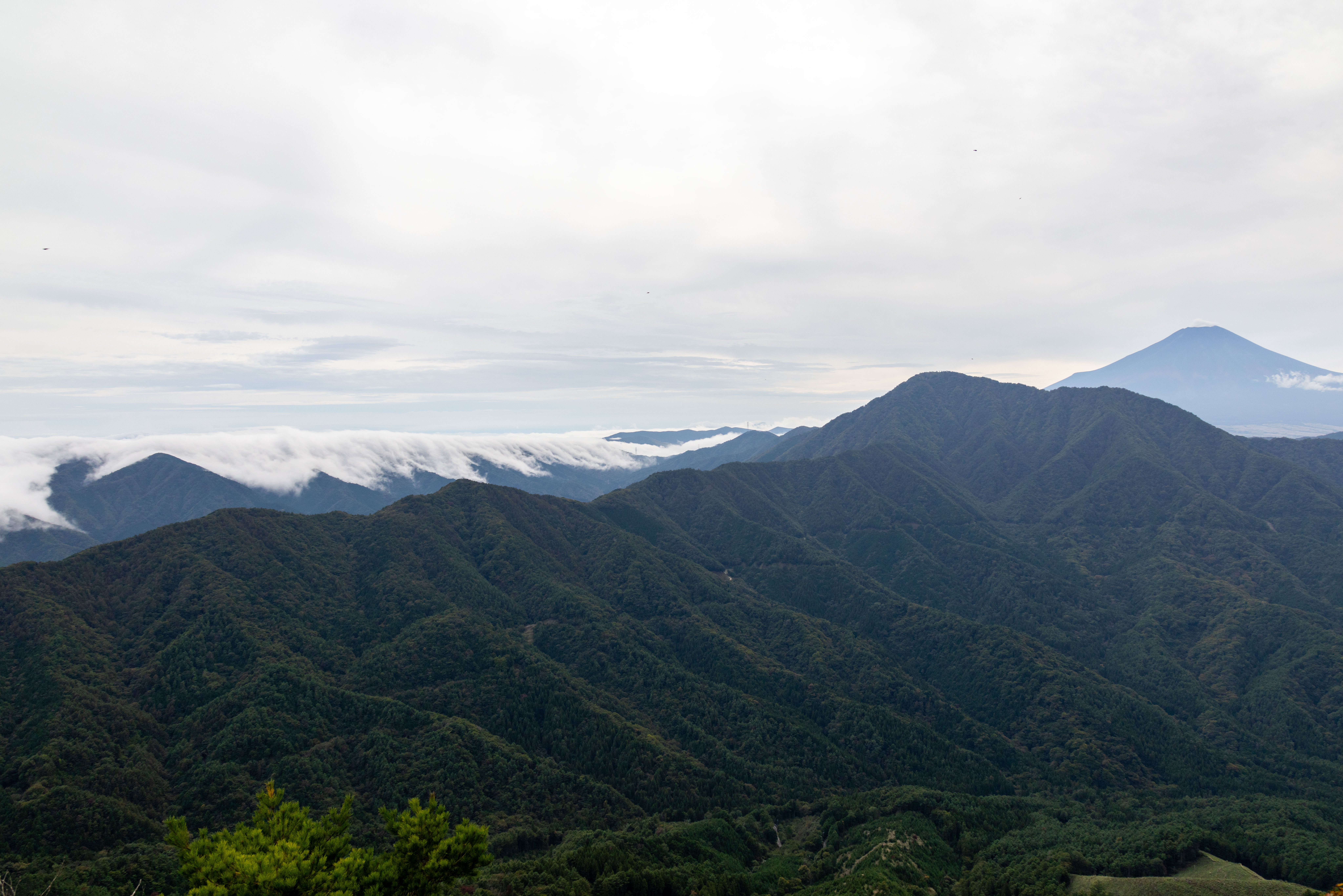 曇天でしたが、山の尾根から流れる滝雲を見ることができました。